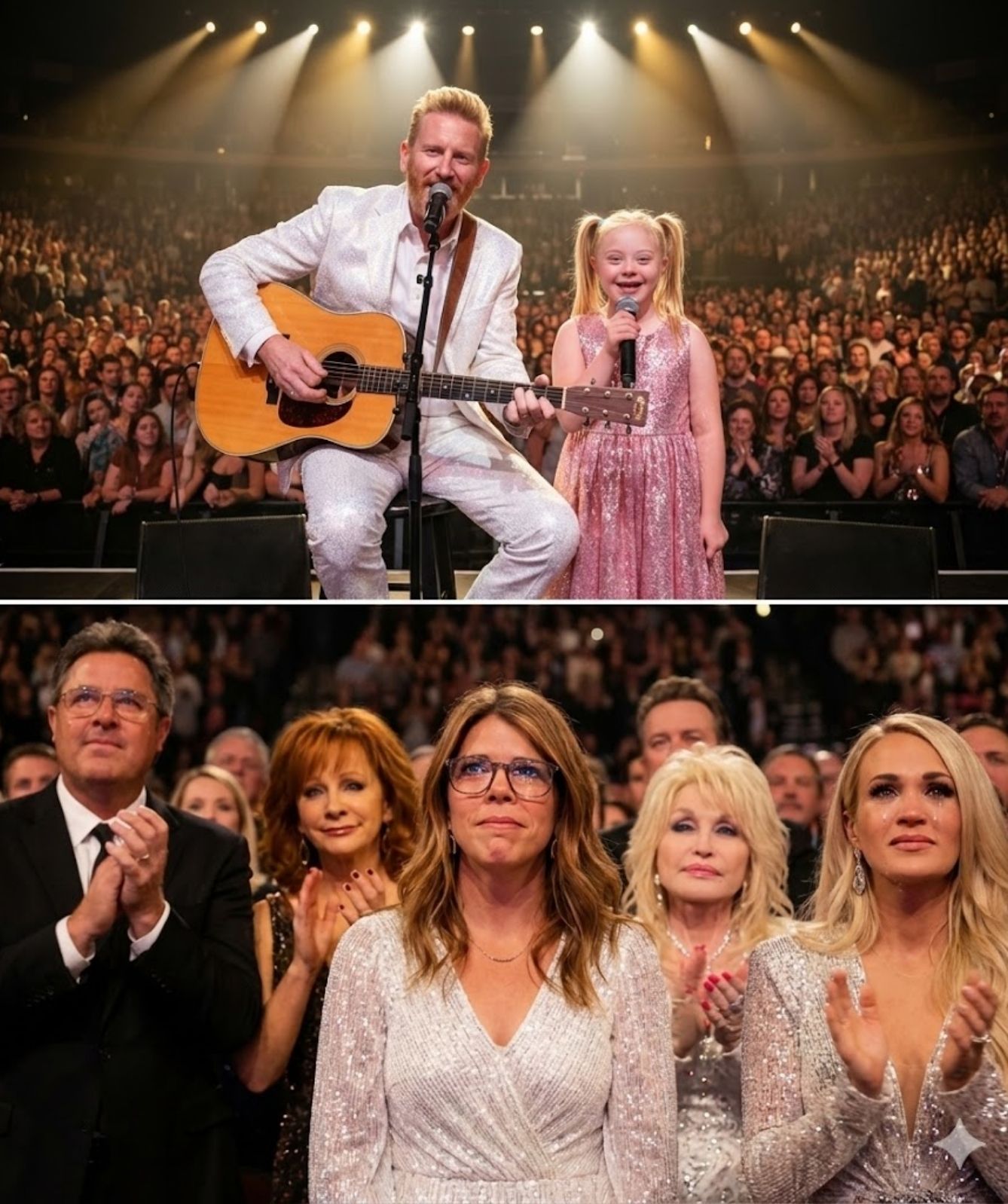 As the duet continued, family connection rose above all else. The crowd felt it — that unmistakable sense of being invited into something real. Hearts overflowed, not with sorrow, but with tears of pure delight. It was joy that did not deny the past, but honored it by choosing hope.