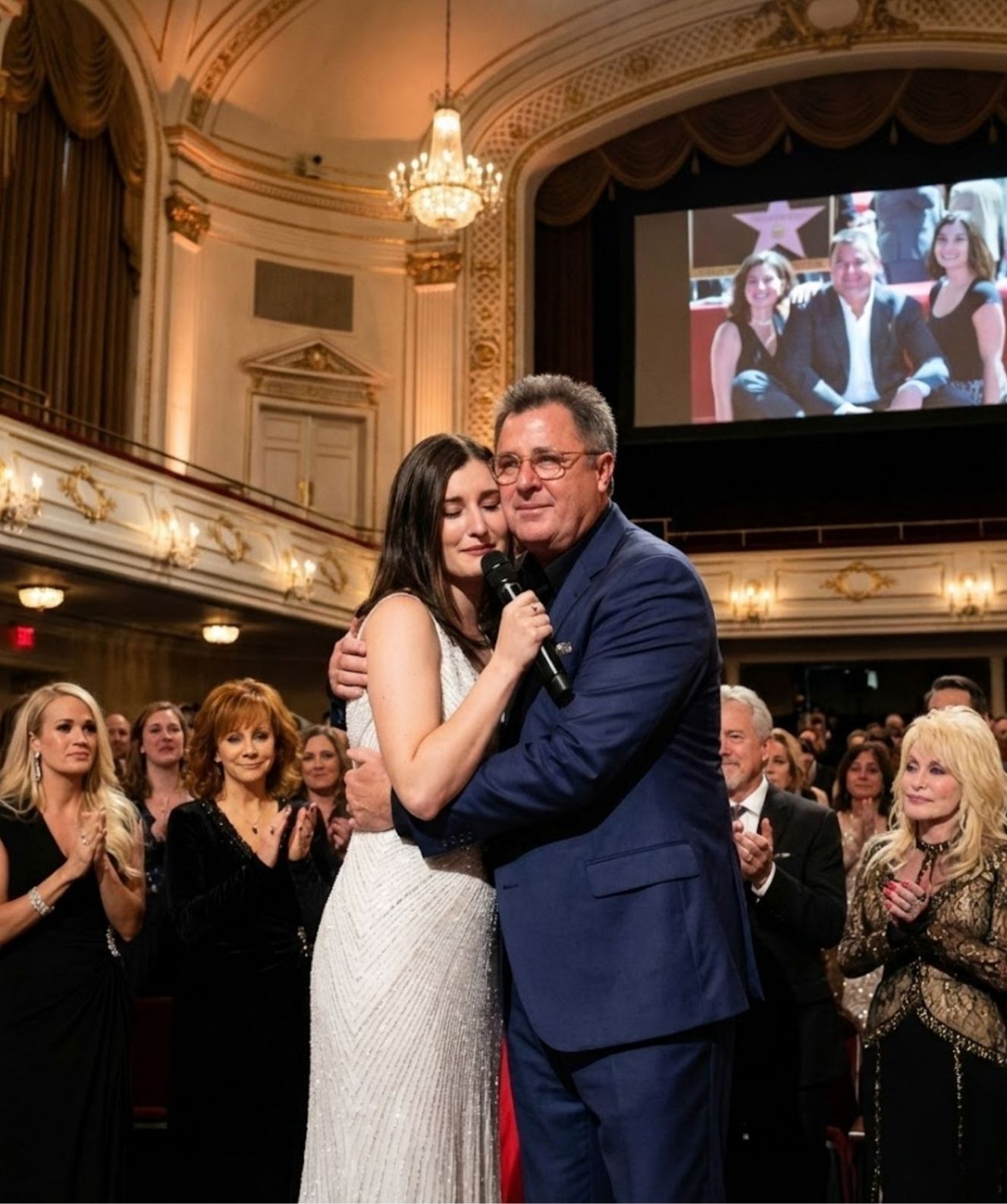 There are times when words fail, even for those who have built their lives around them. Times when the most honest response is not to speak, but to feel. And in that sacred hush, Vince Gill’s stillness became its own kind of language — one that carried pride, love, and something even deeper… something closer to awe.