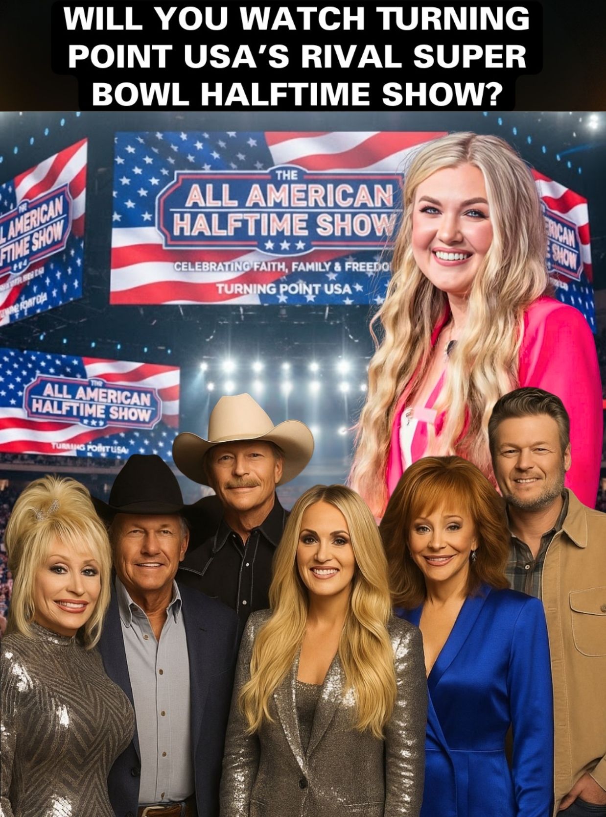 In what’s already being hailed as one of the most anticipated live events in decades, six of country music’s greatest icons — Dolly Parton, Alan Jackson, Carrie Underwood, Reba McEntire, and Blake Shelton — will share one monumental stage for the “All-American Halftime Show.”