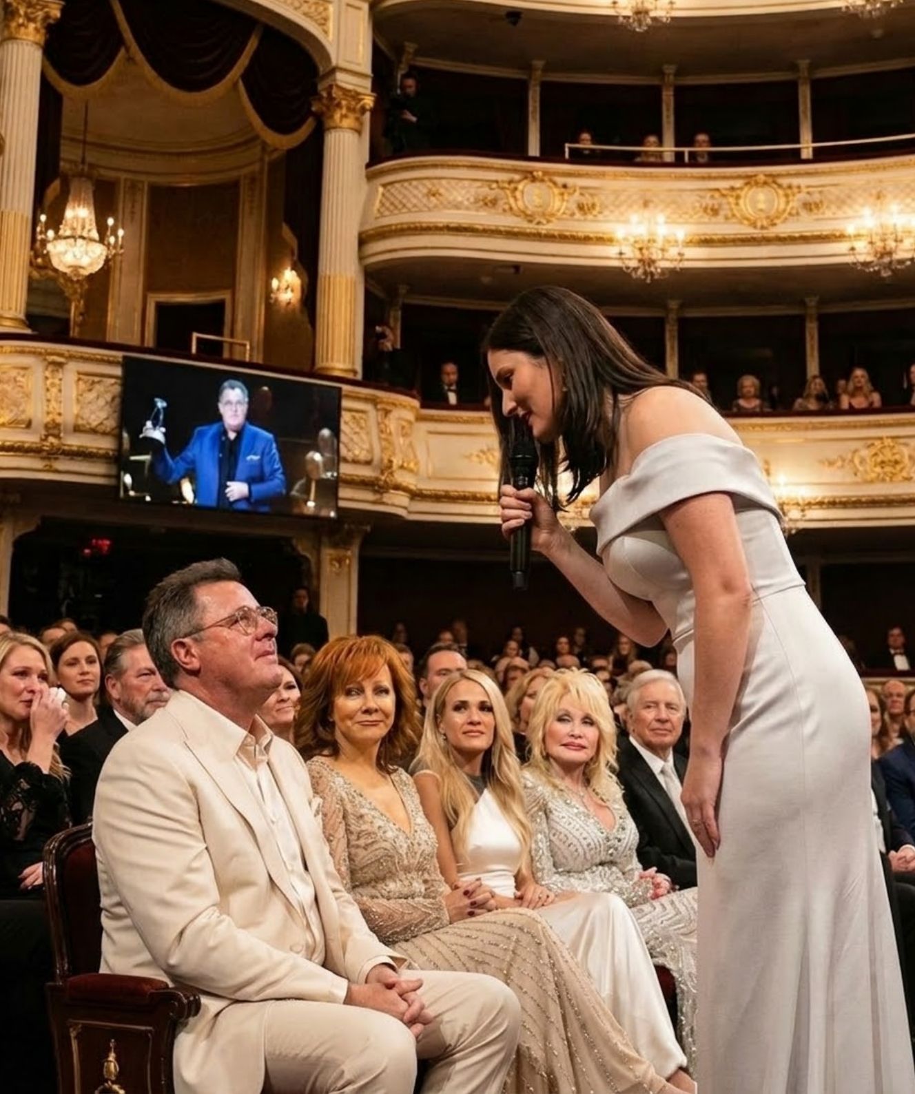 In the audience, Vince Gill sat still, his eyes fixed on her.