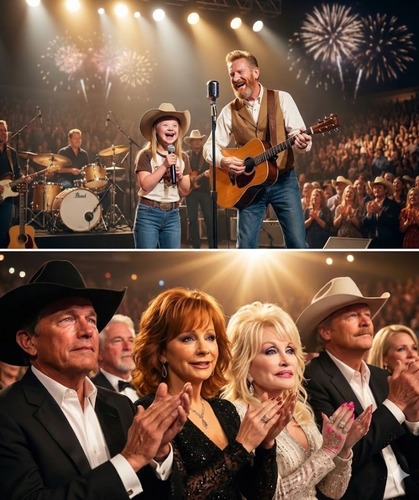 As father and daughter sang, time behaved differently. The massive arena shrank into something intimate, something human. Generations sat motionless — grandparents, parents, children — all drawn into the same stillness. Tears fell freely, not because the moment was sad, but because it was honest. Hearts did not break apart; they broke open.