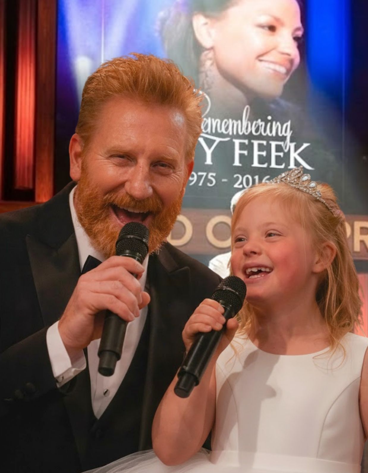 Standing under the familiar lights was Rory Feek, quiet, steady, carrying the unmistakable weight of a man who has learned how to keep walking after life changes shape. At his side stood his daughter, Indiana Feek — small in stature, yet surrounded by a stillness so deep it felt protective.