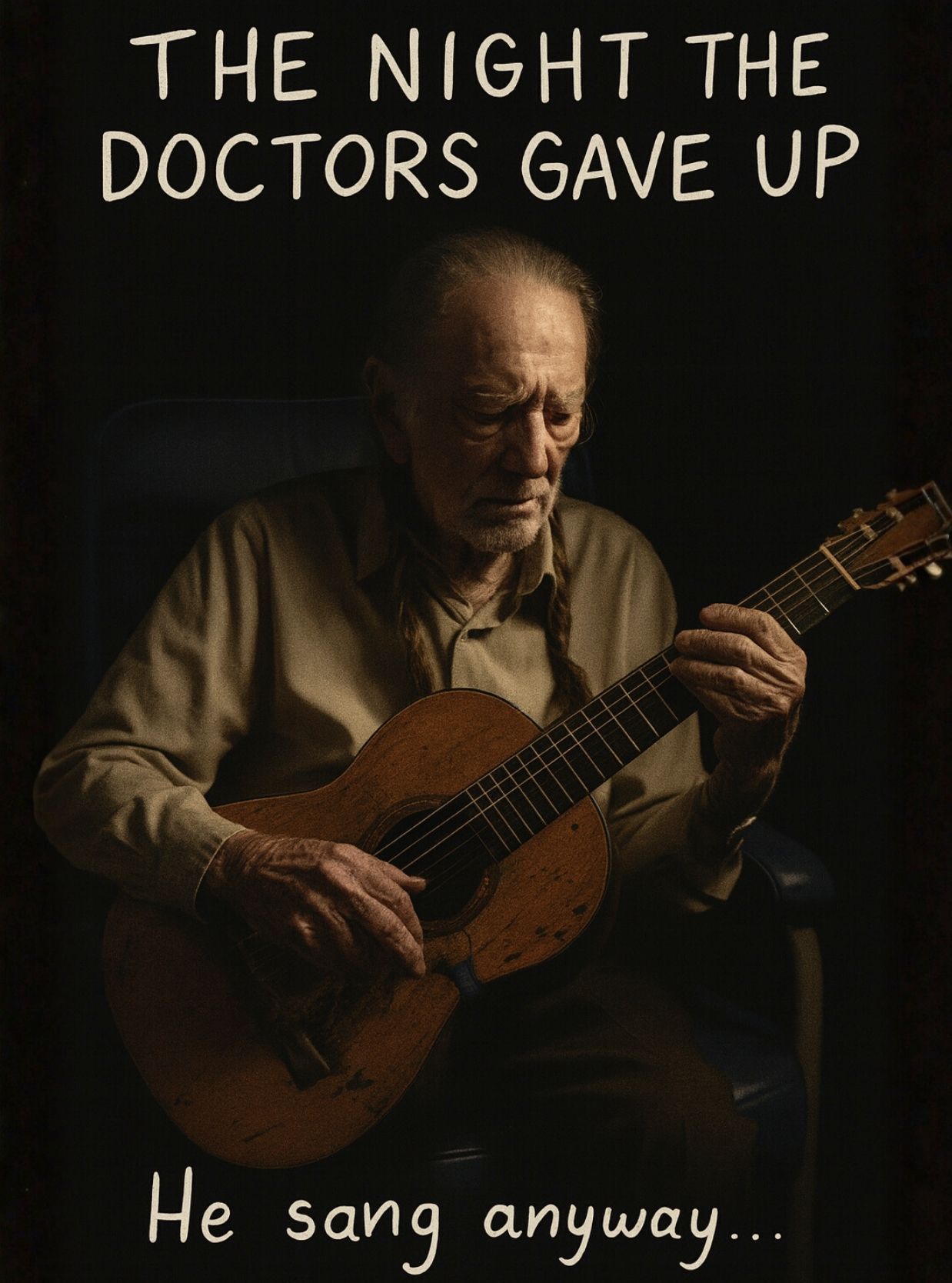 There are moments in life when time seems to hesitate — when even the air itself becomes still, as if waiting for an answer no one dares to speak. For Willie Nelson, that moment arrived just hours before midnight, in a dimly lit hospital room where machines hummed softly and doctors exchanged quiet, worried glances. It was a night that would test the strength of a legend, the resilience of a lifetime, and the unshakable bond between a man and the music that had carried him through nine decades of storms and sunrises.