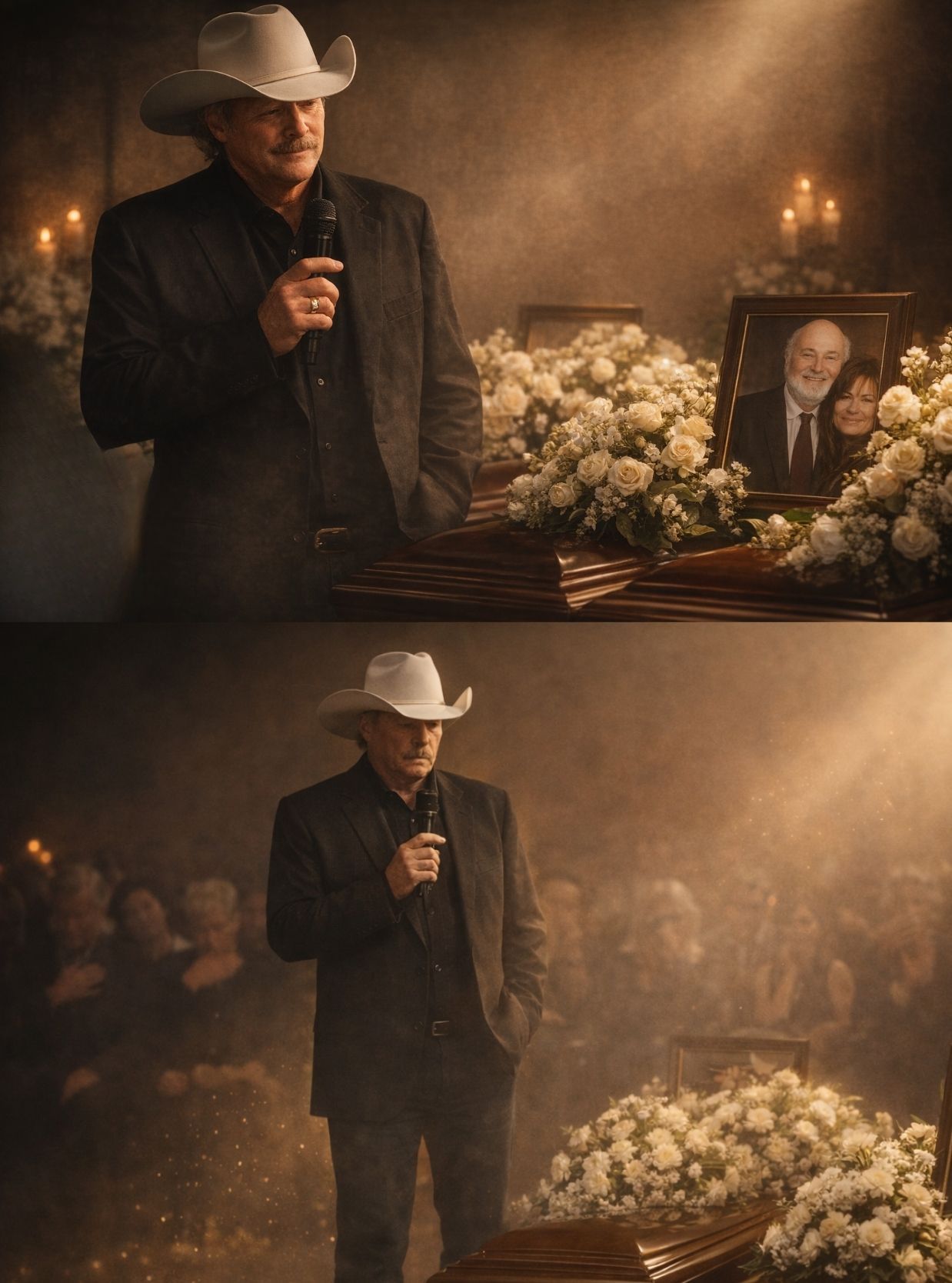 When Alan began to sing, his gentle voice did not push against the silence — it honored it. The song moved slowly, carefully, like a hand resting on a shoulder in grief. In this imagined moment, it felt as though his voice gathered the memories of Rob Reiner and Michele Singer Reiner, lifting them not as names or titles, but as a shared story held tenderly by everyone in the room.