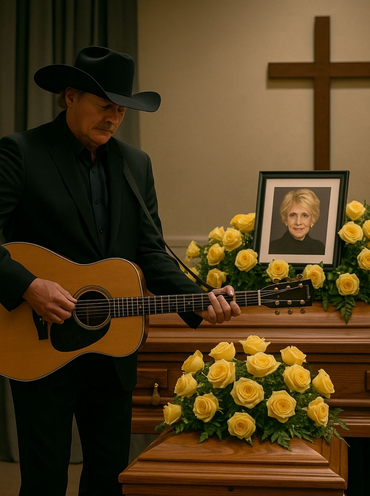At the front of the room, draped in yellow roses and wrapped in the hush of old hymns, lay Jeannie Seely, known to generations as “Miss Country Soul.” Her passing had left a hole in the heart of the Opry and a silence too deep for words. But Alan hadn’t come to speak. He came to sing — not for applause, not for memory’s sake, but for the kind of goodbye only music can carry.