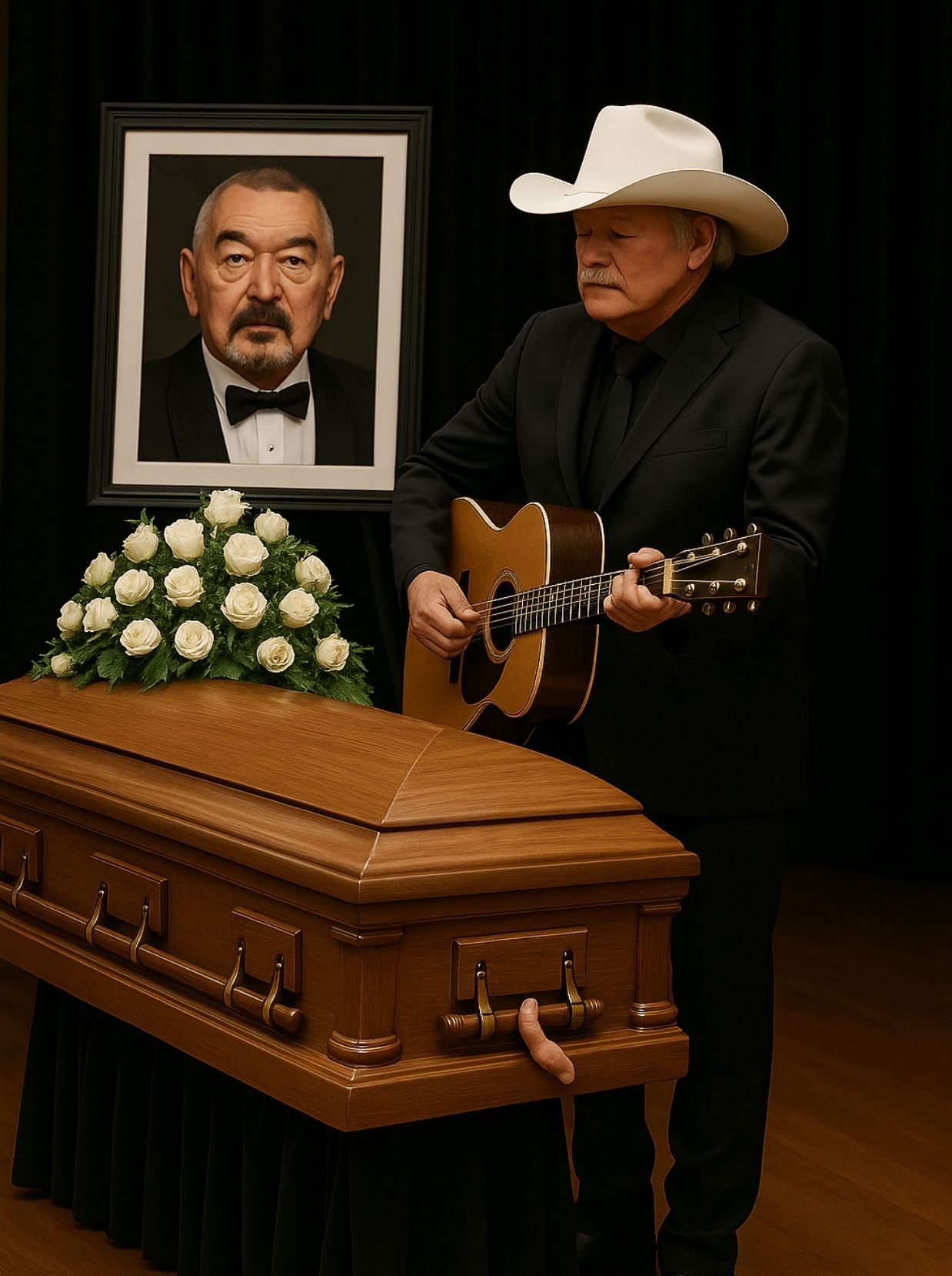 In that chapel, their legacies met. One legend lay in repose, honored for a lifetime of storytelling. The other stood in grief, offering a farewell written not in speeches but in song.