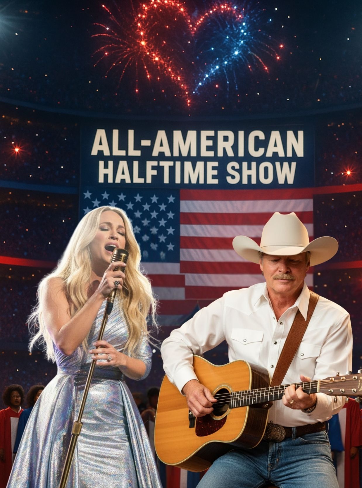 It’s the collaboration no one saw coming — and the one America didn’t know it needed. Carrie Underwood and Alan Jackson, two of country music’s most beloved voices, are joining forces for what’s being called “The All-American Halftime Show,” a red, white, and blue spectacular set to light up Super Bowl weekend with a celebration of faith, family, and freedom.