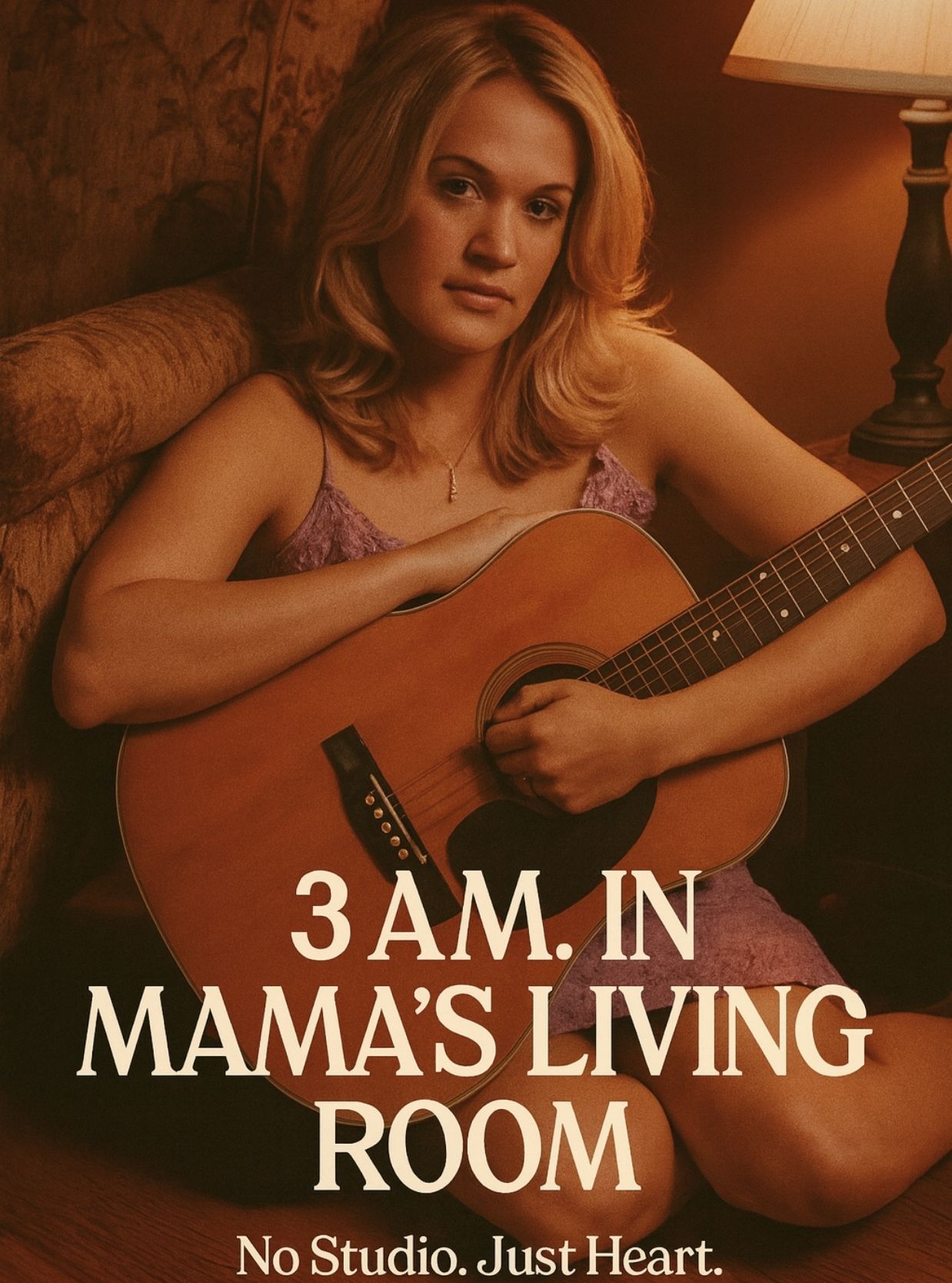 Carrie explained that there was no planned session, no team waiting, no microphone setup by a crew. It was simply her, a well-worn guitar, the darkened hallway, and the presence of her sleeping mother just a few steps away. She described the moment as something she didn’t chase — it found her. Inspiration, she said, came like a quiet tap on the shoulder, urging her to sit down and let her heart speak before morning stole the feeling away.