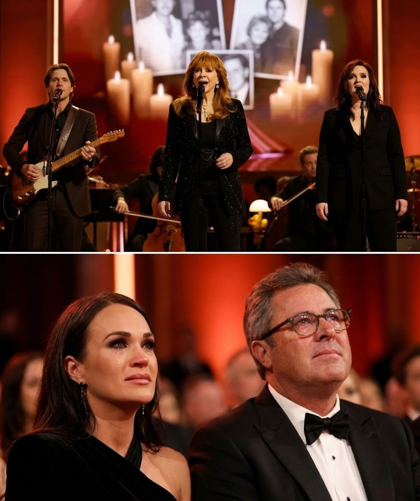 From their seats, Vince Gill and Carrie Underwood watched in stunned silence. There was no attempt to hide the emotion on their faces. Tears fell freely, not as spectacle, but as recognition — the kind that comes when loss feels personal, unavoidable, and shared.