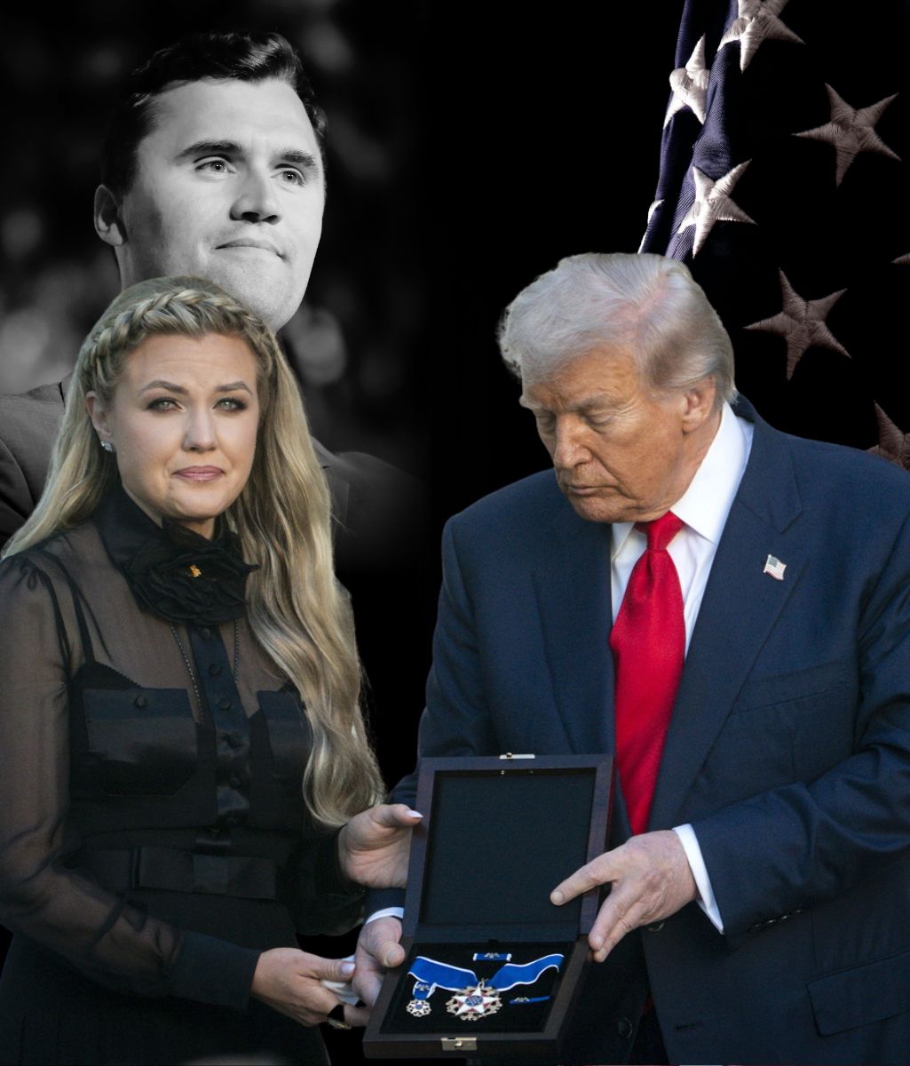 When Erika Kirk, Charlie’s widow, stepped forward to accept the medal, the ceremony took on a sacred stillness. Her composure was gentle but unshaken, her voice steady as she spoke of the man who had been both her husband and her greatest inspiration. She began not with politics, but with gratitude — for the honor, for the people who stood by her family, and for the mission her husband had lived and died for.