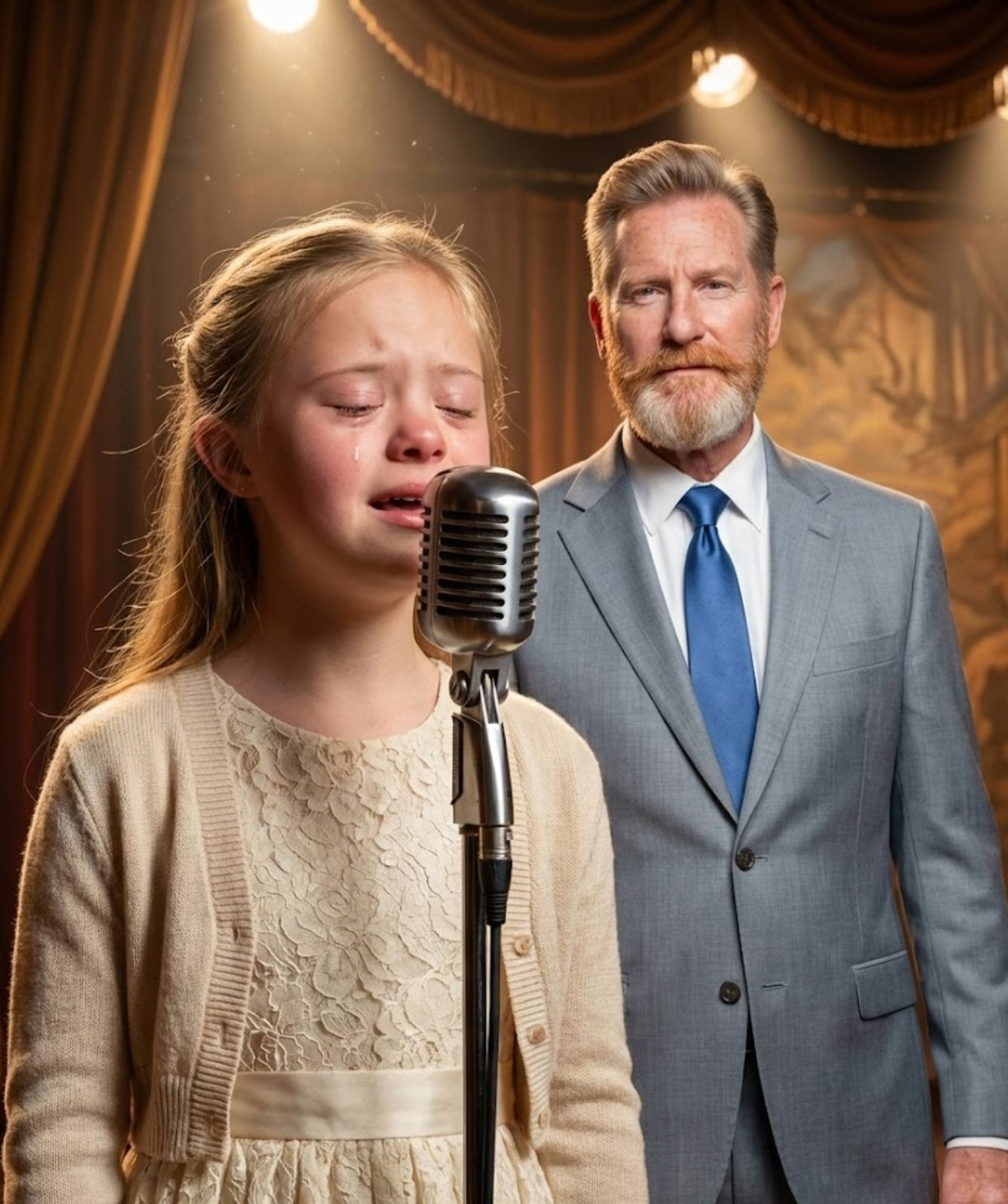 Rory, standing just steps away, could no longer hide what he felt. His composure gave way completely. Tears came freely, not as spectacle, but as release. This was a father witnessing his child step into her own voice — not borrowed, not guided, but claimed.