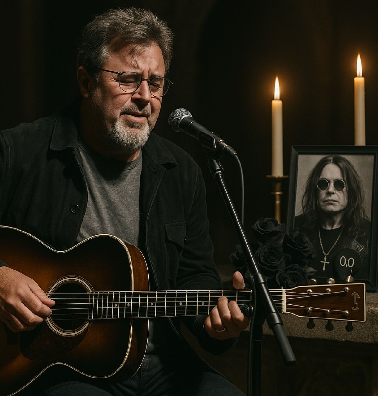 It didn’t matter that Ozzy was rock and Vince was country. There were no genres here, only goodbye. There was no stage, only a man with a guitar. And there was no audience, only witnesses—silent, reverent, eyes misted, hearts full. Vince’s voice rose gently through the stillness, filled not with performance but with presence. He sang of rest, of peace, of pain finally laid down. And for a man who once raged against the dying light, the words suddenly felt like a homecoming.