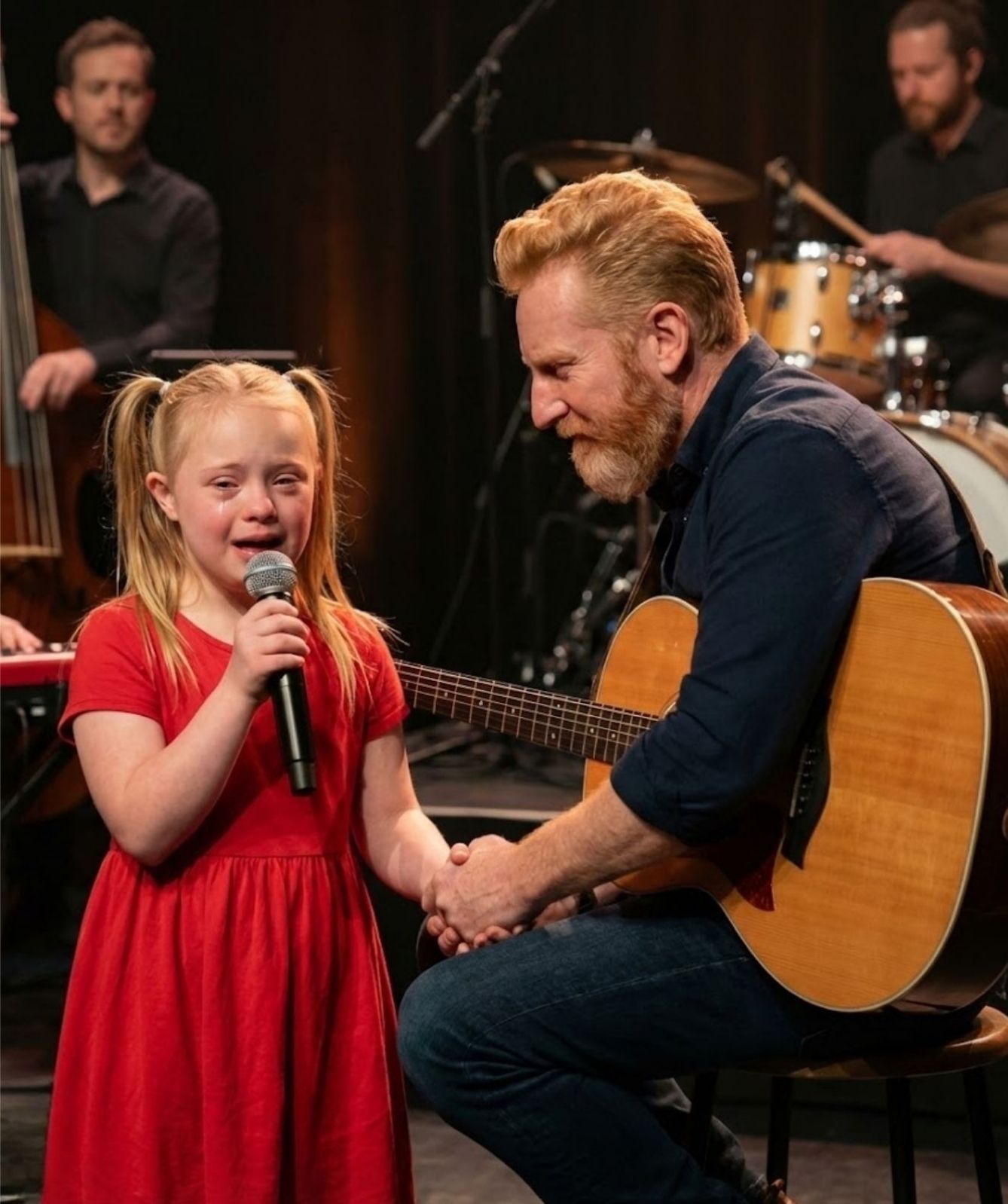 As the evening settled into stillness, Rory Feek stood nearby, steady but quiet. Beside him was his 11-year-old daughter, Indiana Feek, stepping into a light that felt far bigger than any stage.