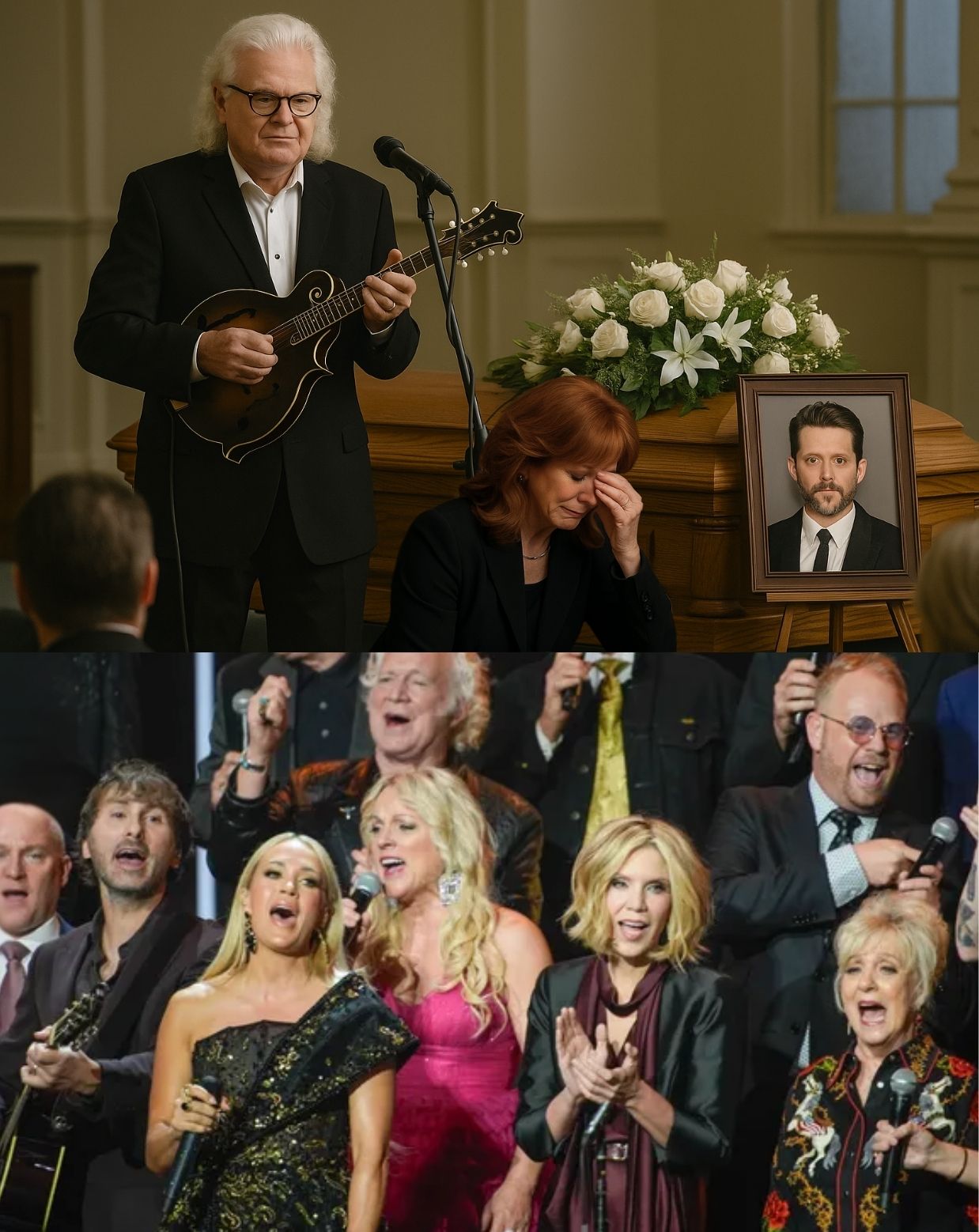 In the front row, Reba McEntire sat with her hands folded, her head bowed, the song washing over her like a soft benediction. Family and friends closed their eyes, some mouthing the familiar words through trembling lips. The congregation seemed to lean into the sound, as though each note was carrying them closer to the place the song described — a land where the soul never dies.