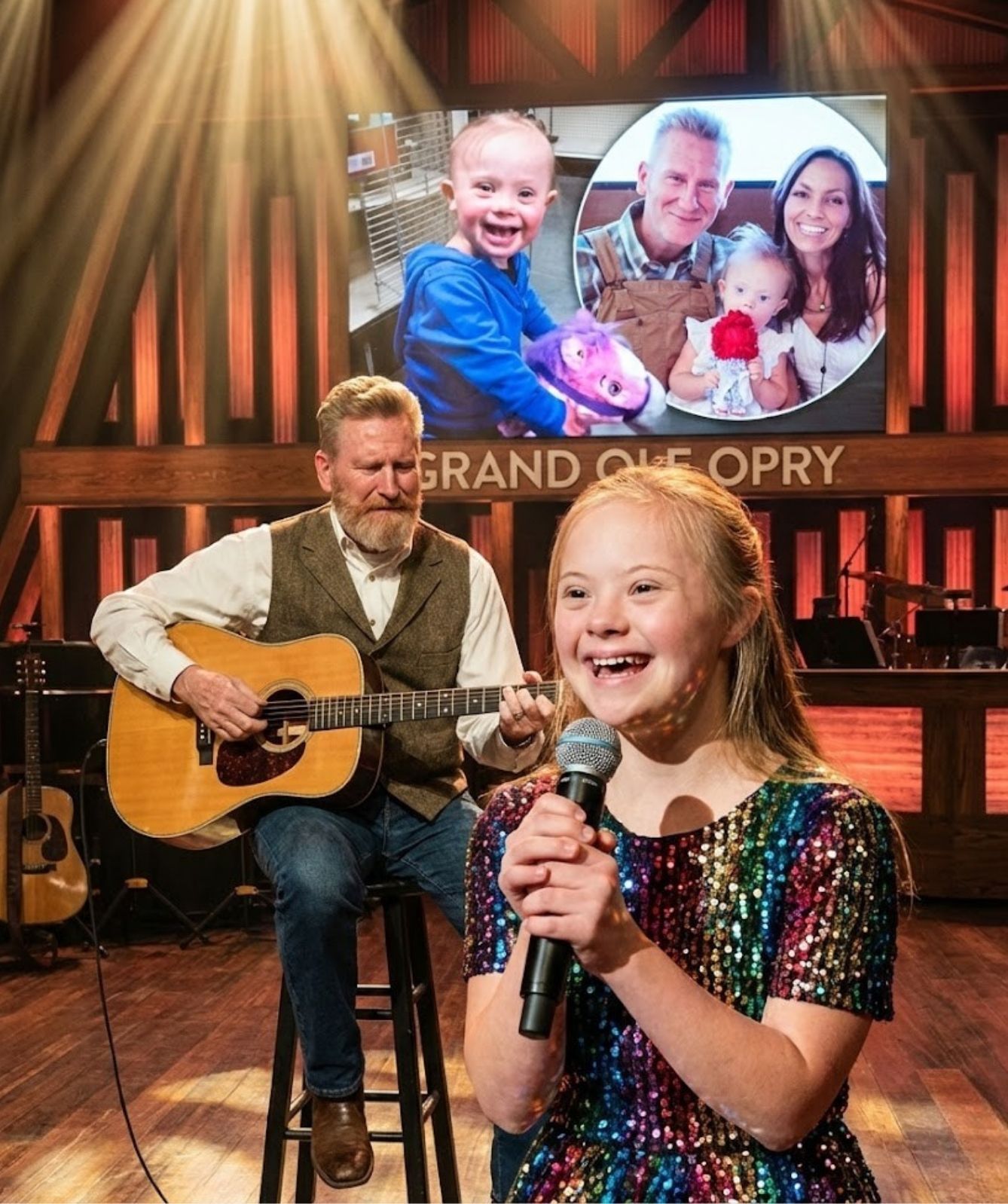 The Opry lights, usually bold and commanding, seemed to glow differently that night. Shadows softened. The space felt held, protected. Time itself appeared to slow, as though reluctant to move forward and risk breaking the spell.