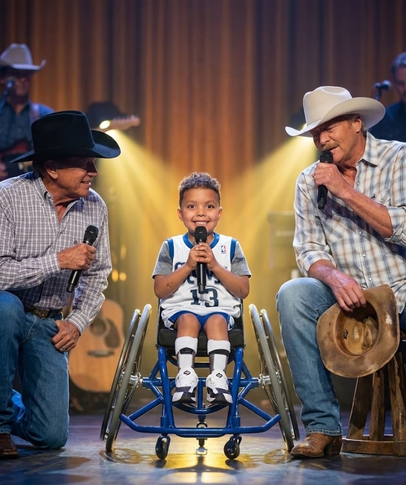 George Strait and Alan Jackson — men whose voices have carried stories of love, loss, faith, and endurance for decades — did something profoundly simple. They invited Bubba, a young fan with disabilities, into their moment.