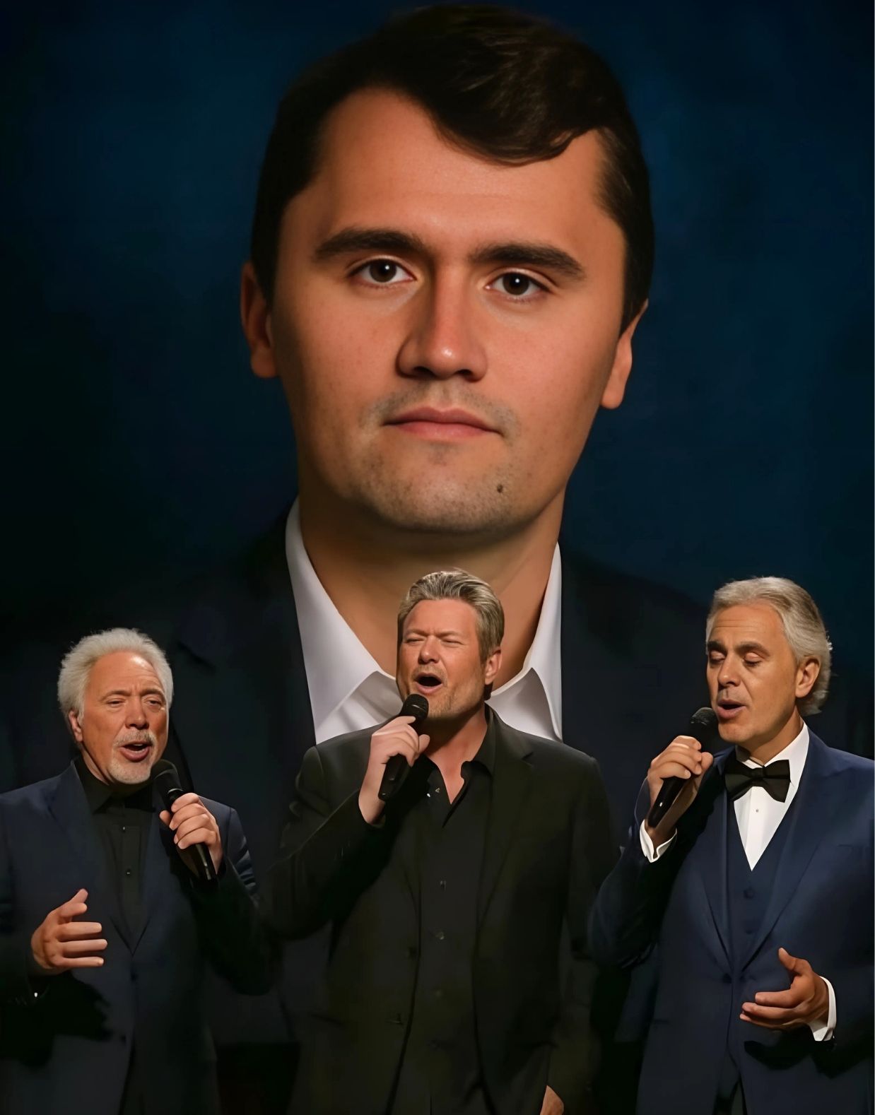 No one could have scripted it, and no one could have truly prepared for it. At Charlie Kirk’s memorial, where grief had already blanketed the stadium like a heavy fog, three figures emerged from the shadows of the stage — each from a different corner of the musical world, each carrying a legacy that stretched across decades and continents.