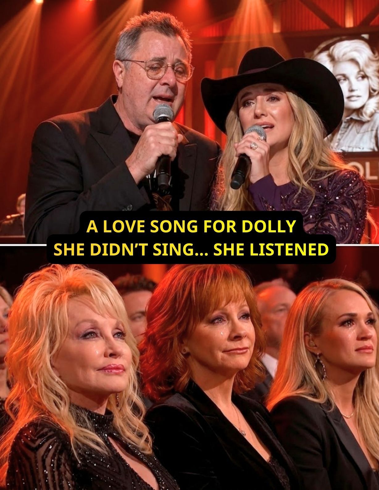 Vince Gill’s voice entered first—gentle, warm, and filled with the kind of emotional honesty that has defined his entire career. He did not try to overpower the song. Instead, he let it breathe, letting each word settle naturally, as if he were speaking directly to Dolly herself.