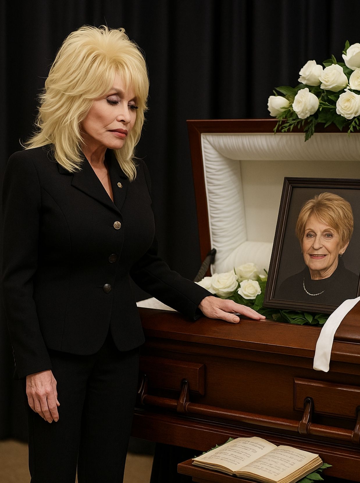 Dolly wasn’t there to perform. She wasn’t announced or escorted in. She came quietly, dressed in solemn black, a single pearl pin gleaming over her heart like a memory held close. Her walk was slow, deliberate. No entourage. No spotlight. Just the echoes of a lifelong friendship leading her down that aisle toward Jeannie Seely — the woman she once called her “Opry sister,” her stage rival in rhinestones, her friend.