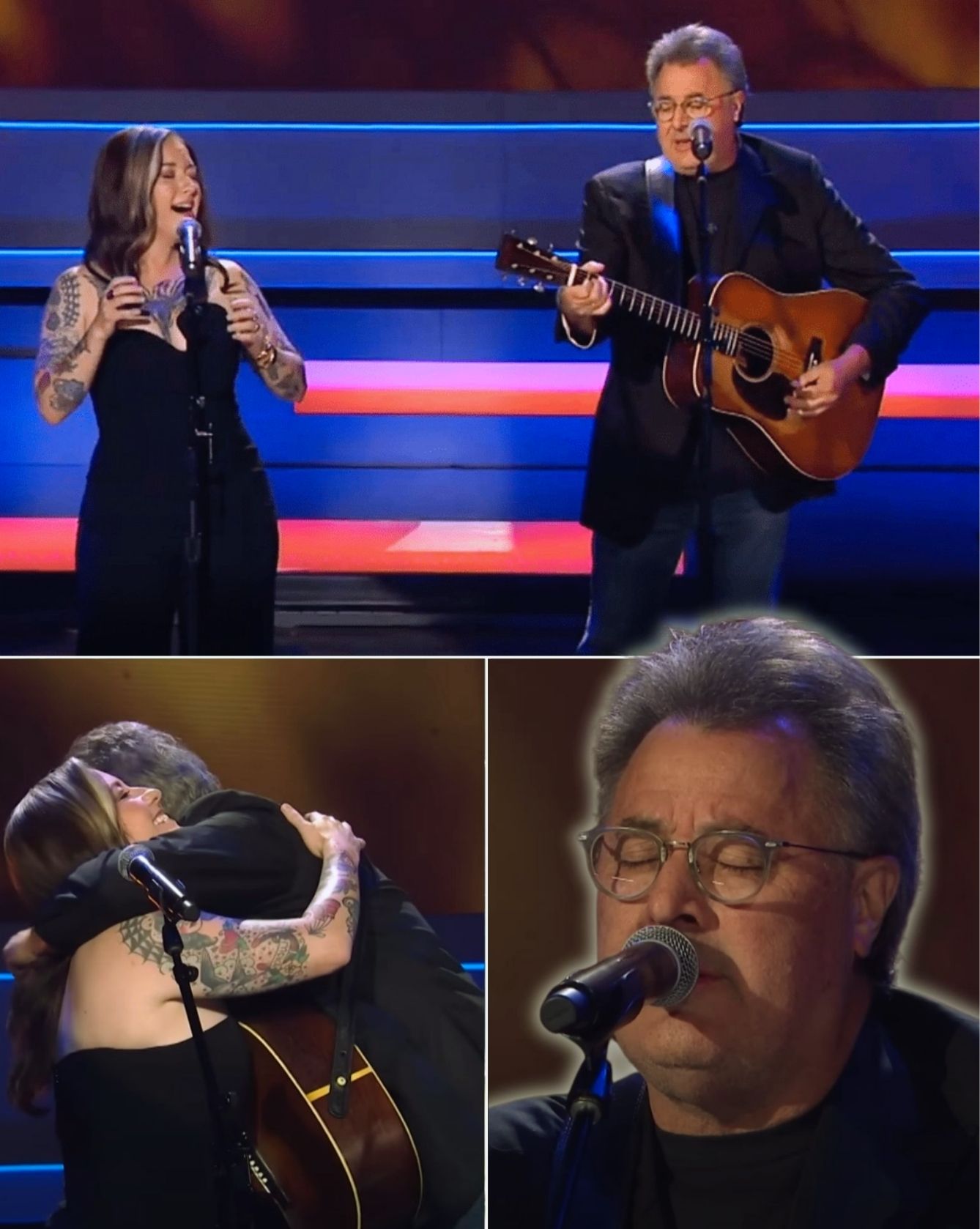 The contrast was haunting. Gill’s tenor, tender yet trembling, intertwined with McBryde’s fierce cry, creating a dialogue that transcended generations. It was as though heartbreak itself had been given two voices, one seasoned by time and the other sharpened by immediacy, each cutting into the silence until there was no refuge from the truth of the song.