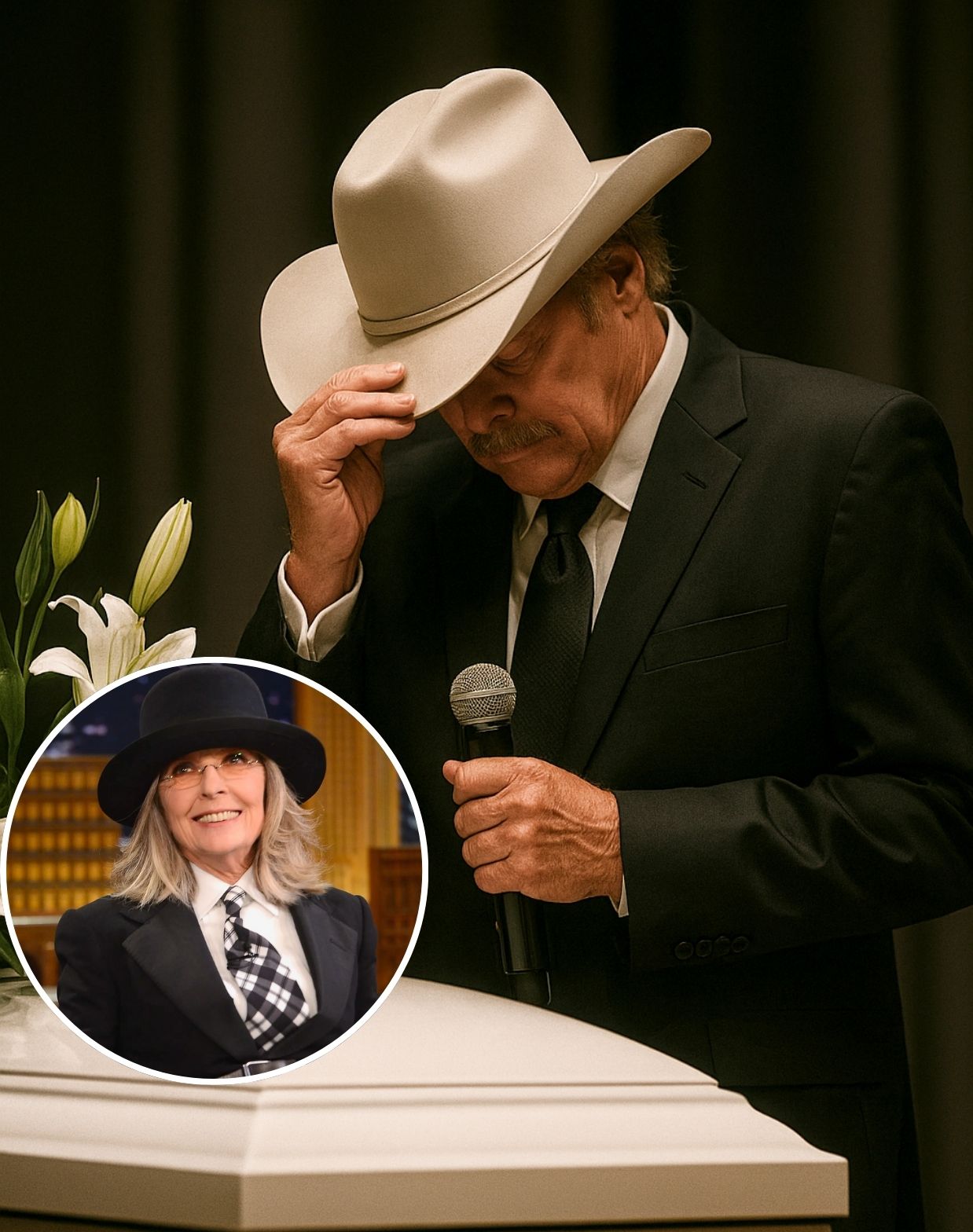 Inside a candlelit chapel in Los Angeles, the air was hushed, heavy with reverence and memory. Alan Jackson, the timeless voice of American country music, stood quietly among mourners gathered to honor the life of Diane Keaton, the Academy Award–winning actress who passed away at 79. There were no bright lights, no cameras — just soft hymns, the glow of candles, and the quiet echo of a life that had touched millions.